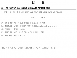 | 공지 | ![]() | 대전시태권도협회 | 136829 | 2022년 2월 15일 |
