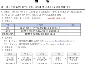 2024년도 KTA 선수, 지도자 및 선수관리담당자 등록 알림
