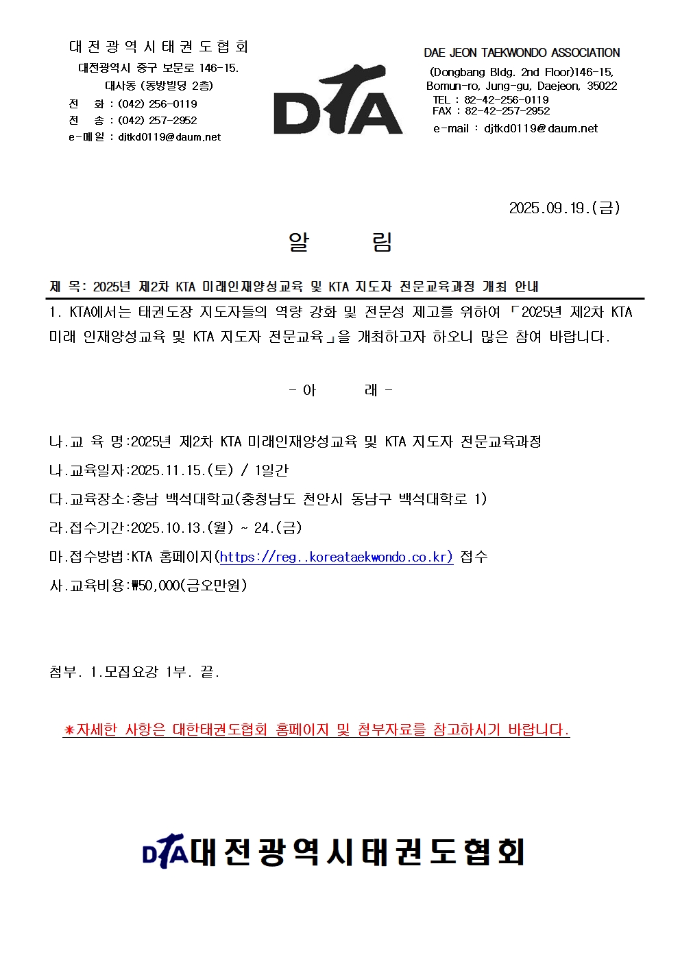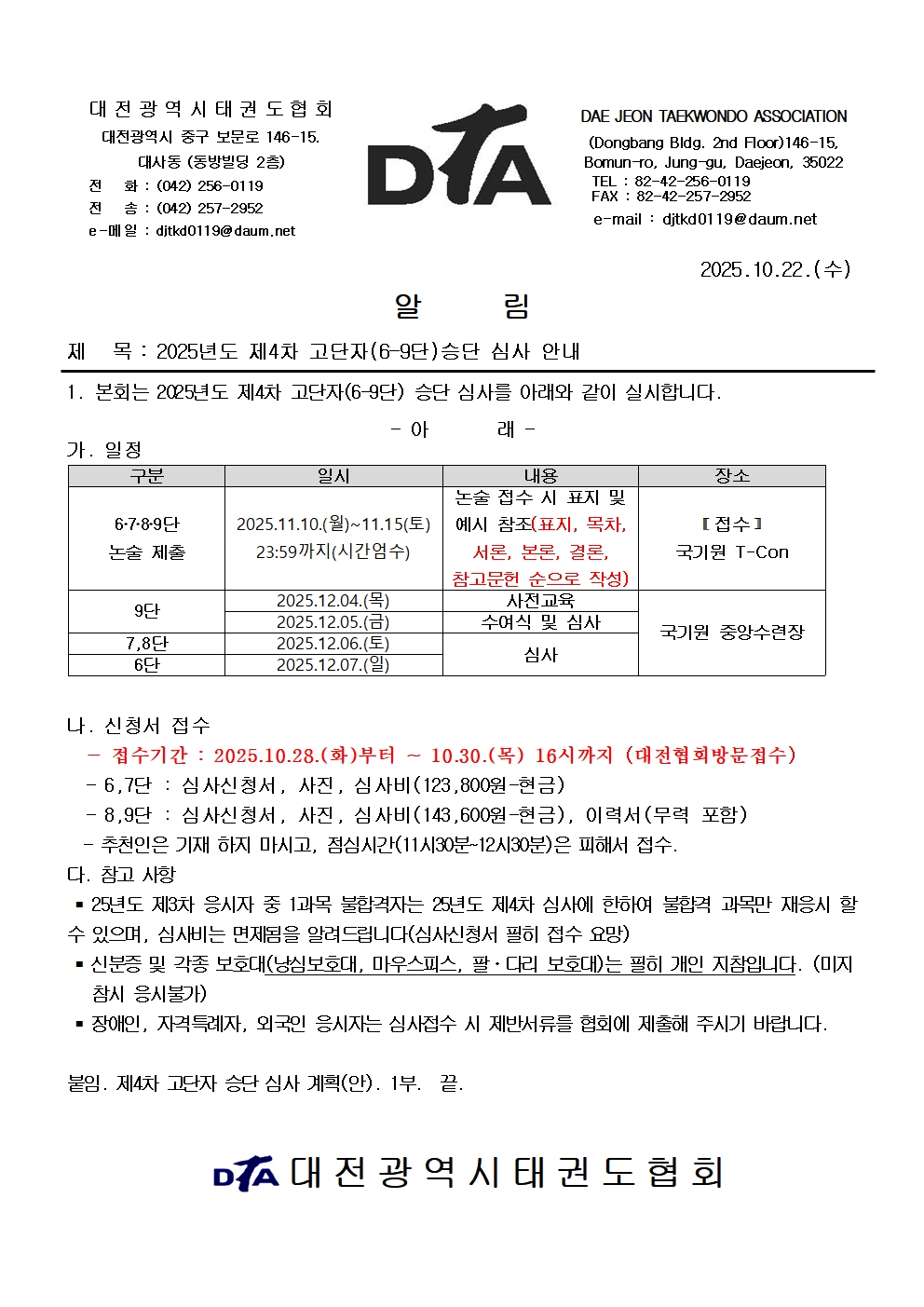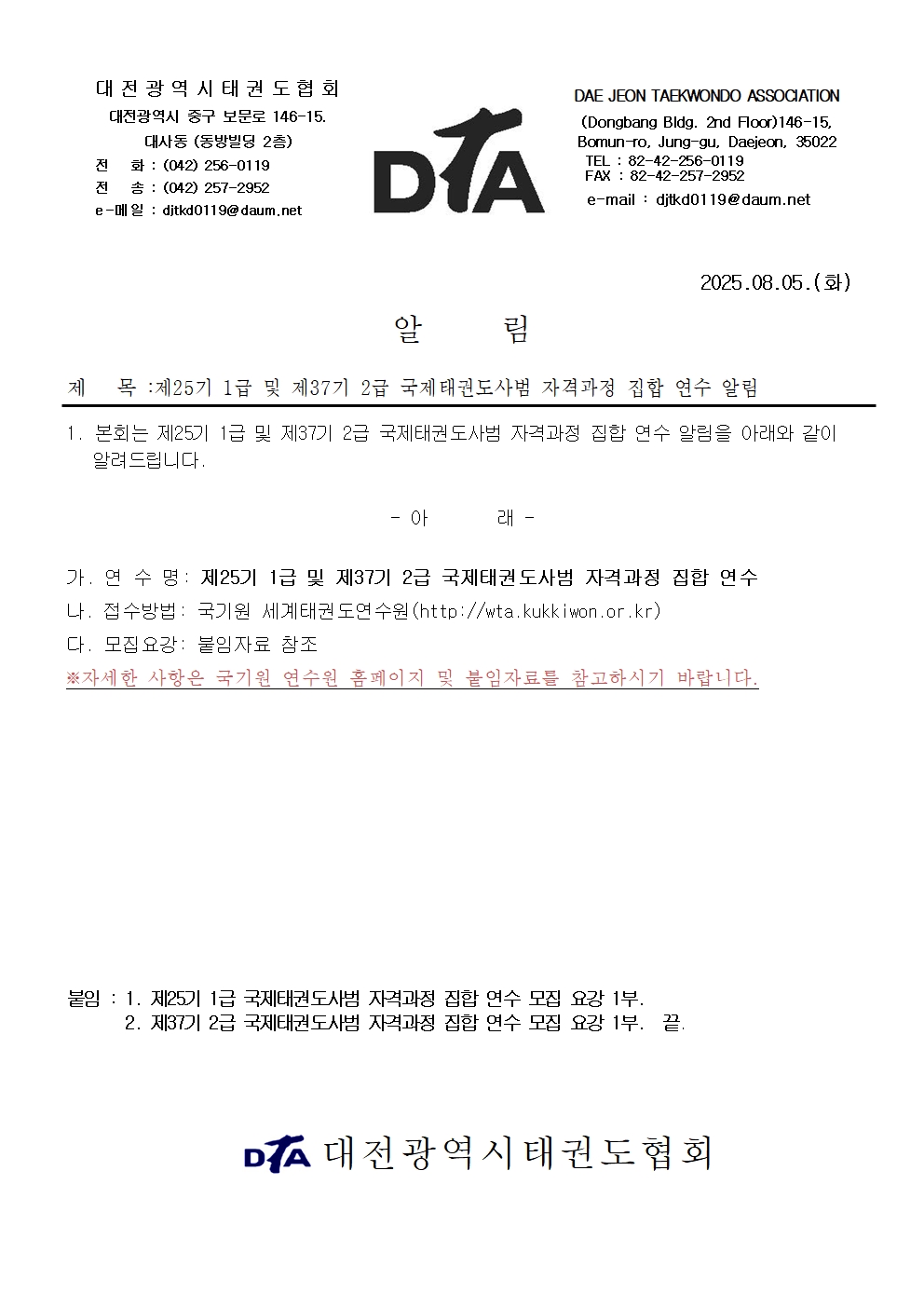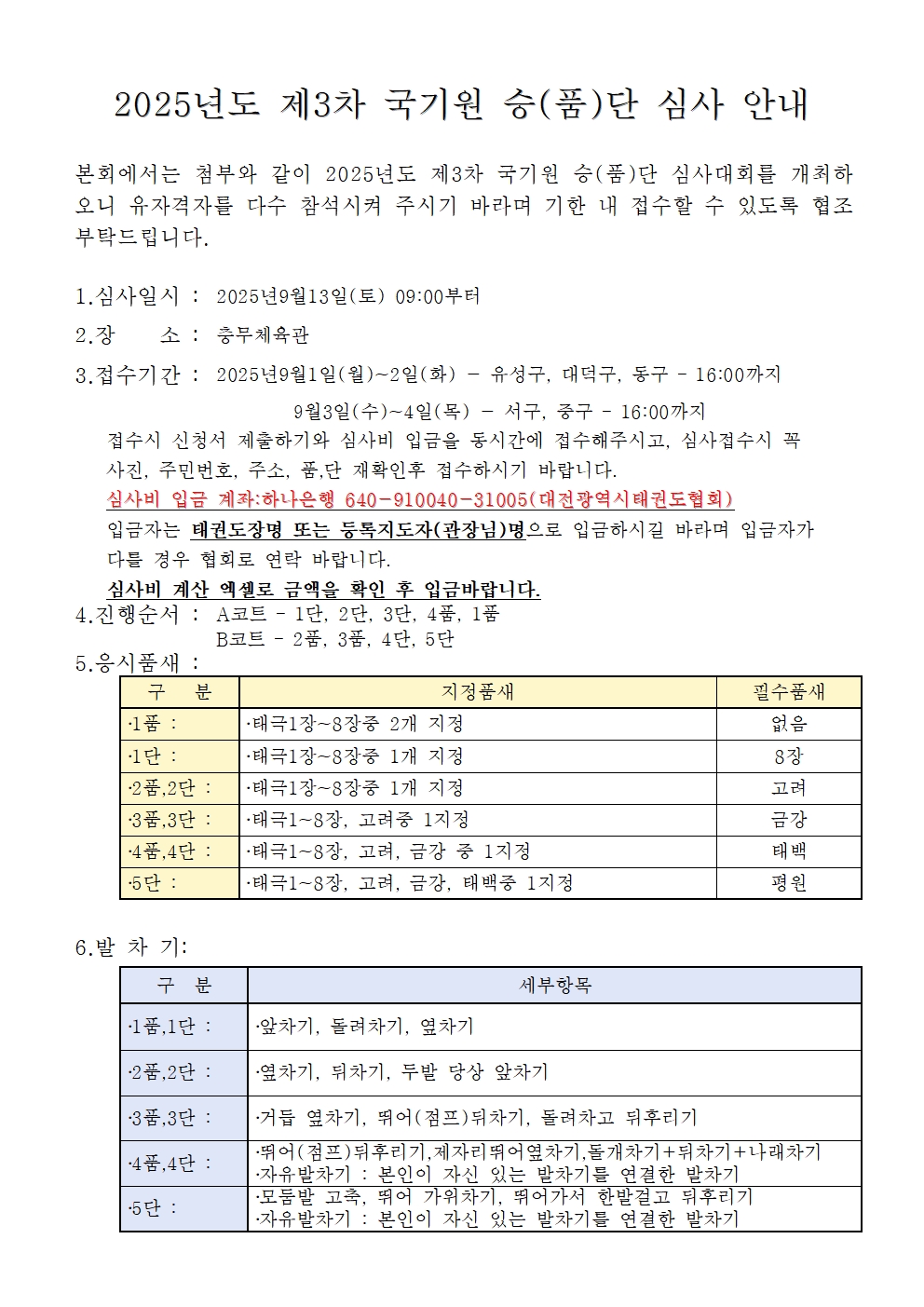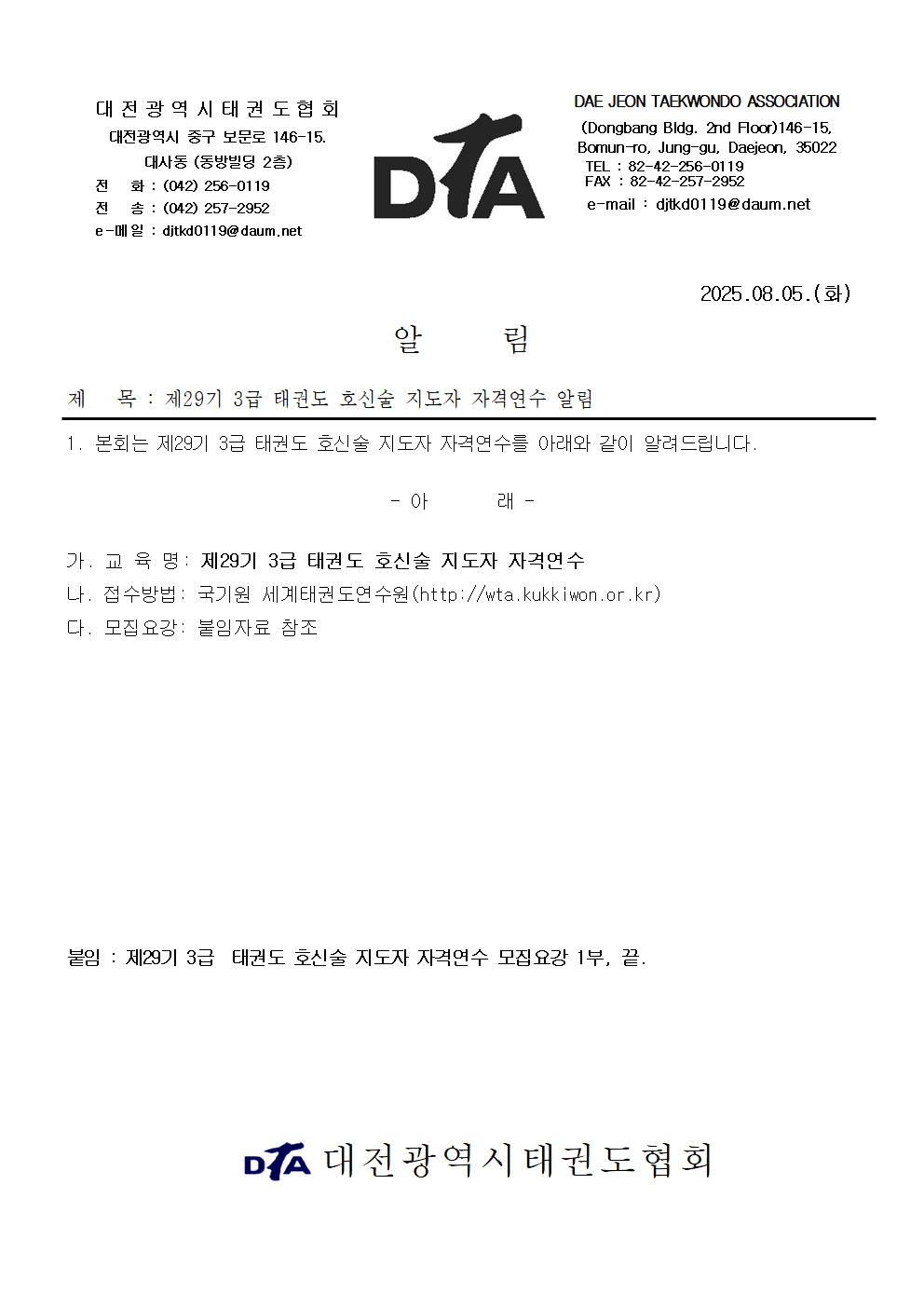 | 공지 | ![]() | 대전시태권도협회 | 138082 | 2022년 2월 15일 |