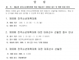 제55회 전국소년체육대회 대전 대표선수 선발전 접수 안내 및 대회 일정 안내