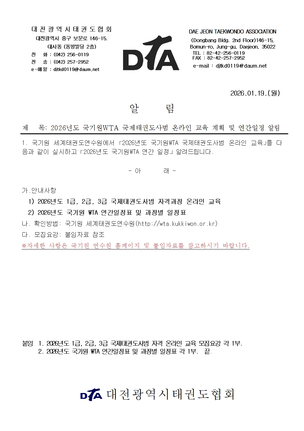 | 공지 | ![]() | 대전시태권도협회 | 129738 | 2022년 2월 15일 |