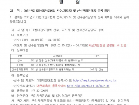 2021년도 대한태권도협회 선수,지도자 및 선수관리담당자 등록 알림