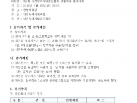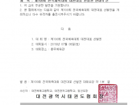 | 353 | ![]() | 제30회 대전광역시 태권도협회장기대회 및 제9회 대전광역시 태권도협회장배 생활체육 품새대회 대표자회의 내용 및 대진표 c | 대전시태권도협회 | 7294 | 2019년 6월 20일 |