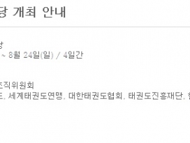 | 112 | 대전시태권도협회 | 4686 | 2014년 7월 23일 | ||