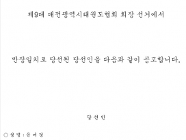 | 공지 | ![]() | 대전시태권도협회 | 135656 | 2022년 2월 15일 |