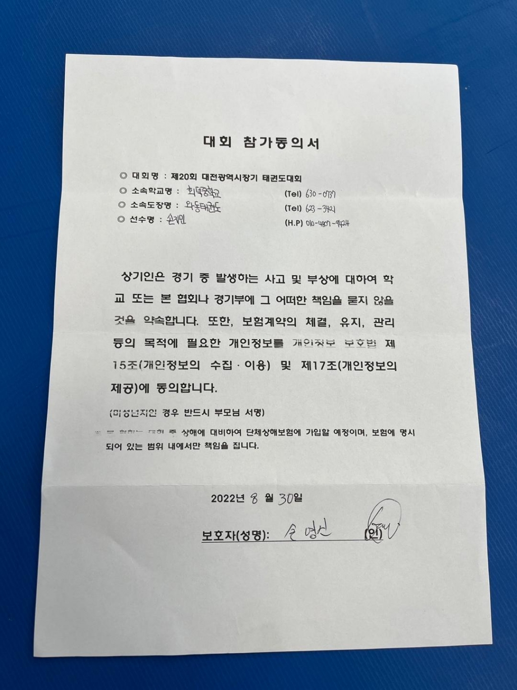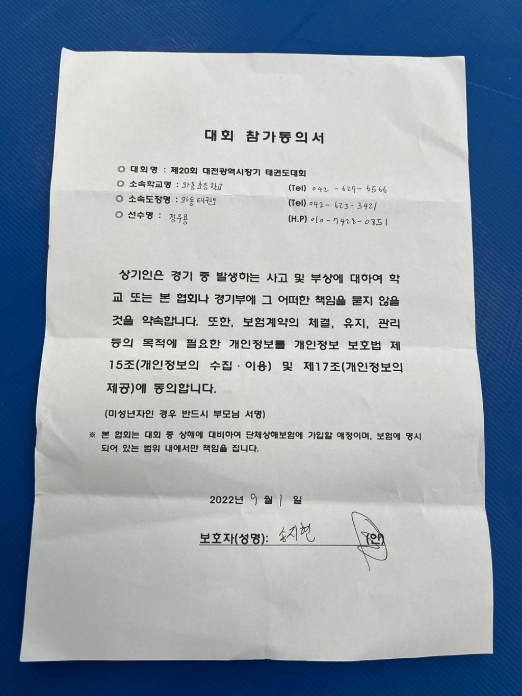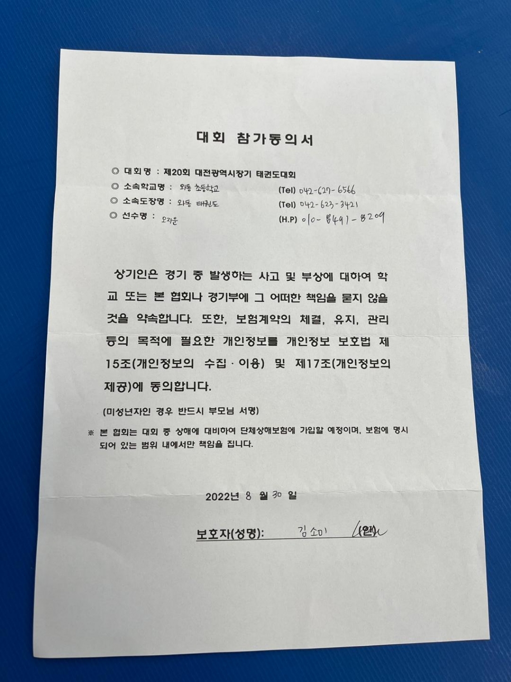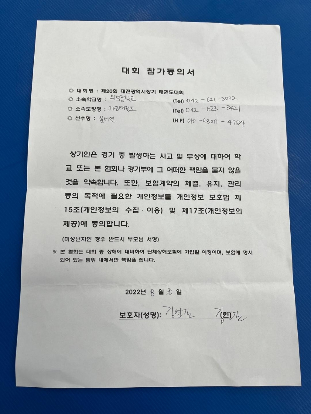 | 494 | 용인대다사랑태권도 대전시장기대회 참가동의서입니다. l image | 용인대 다사랑태권도 | 14 | 2022년 9월 7일 |
