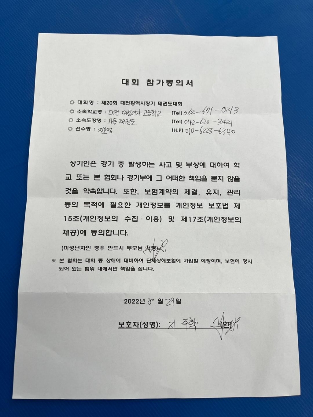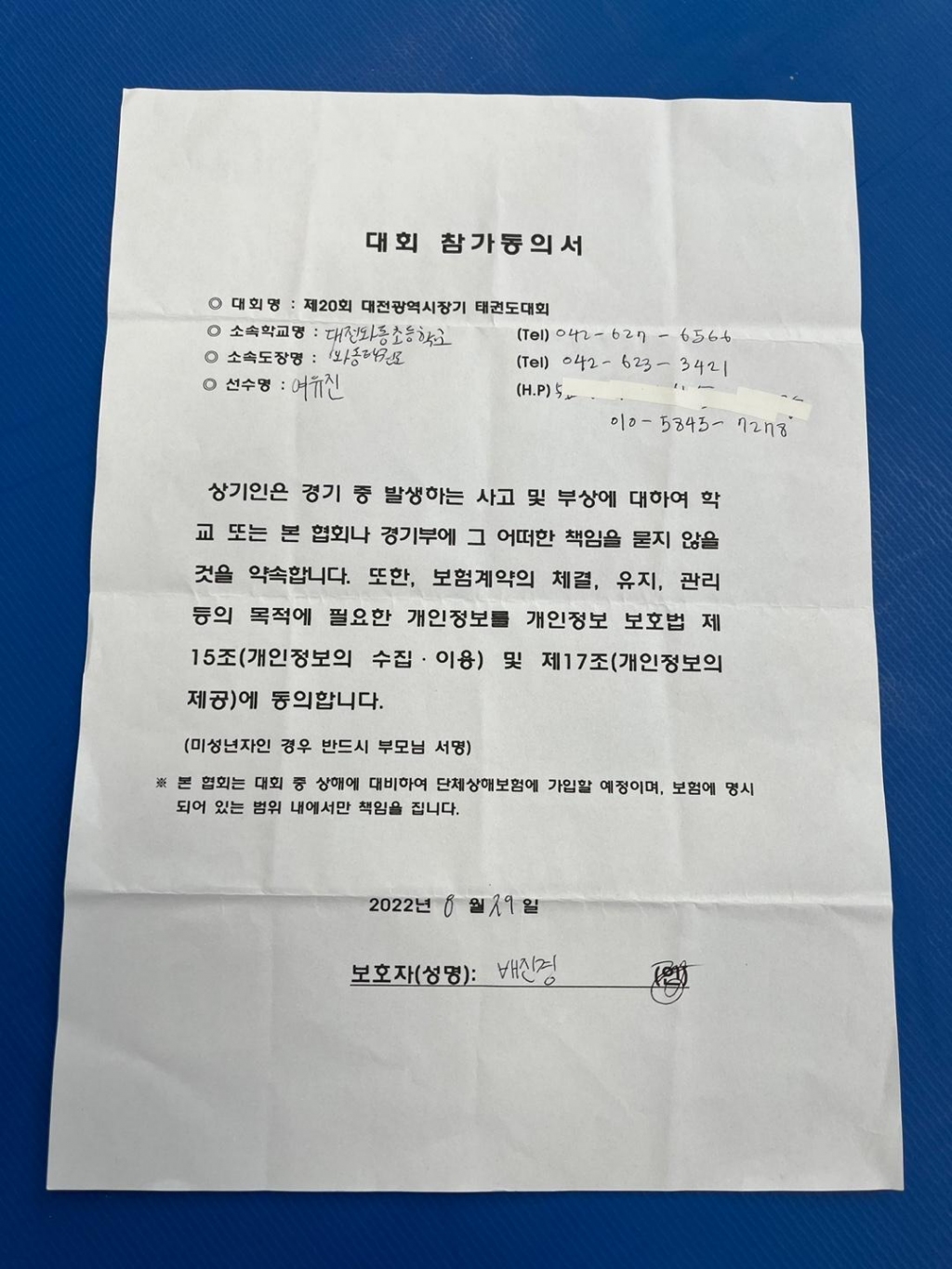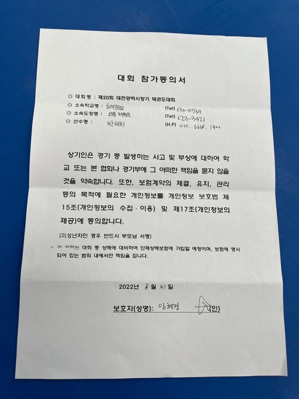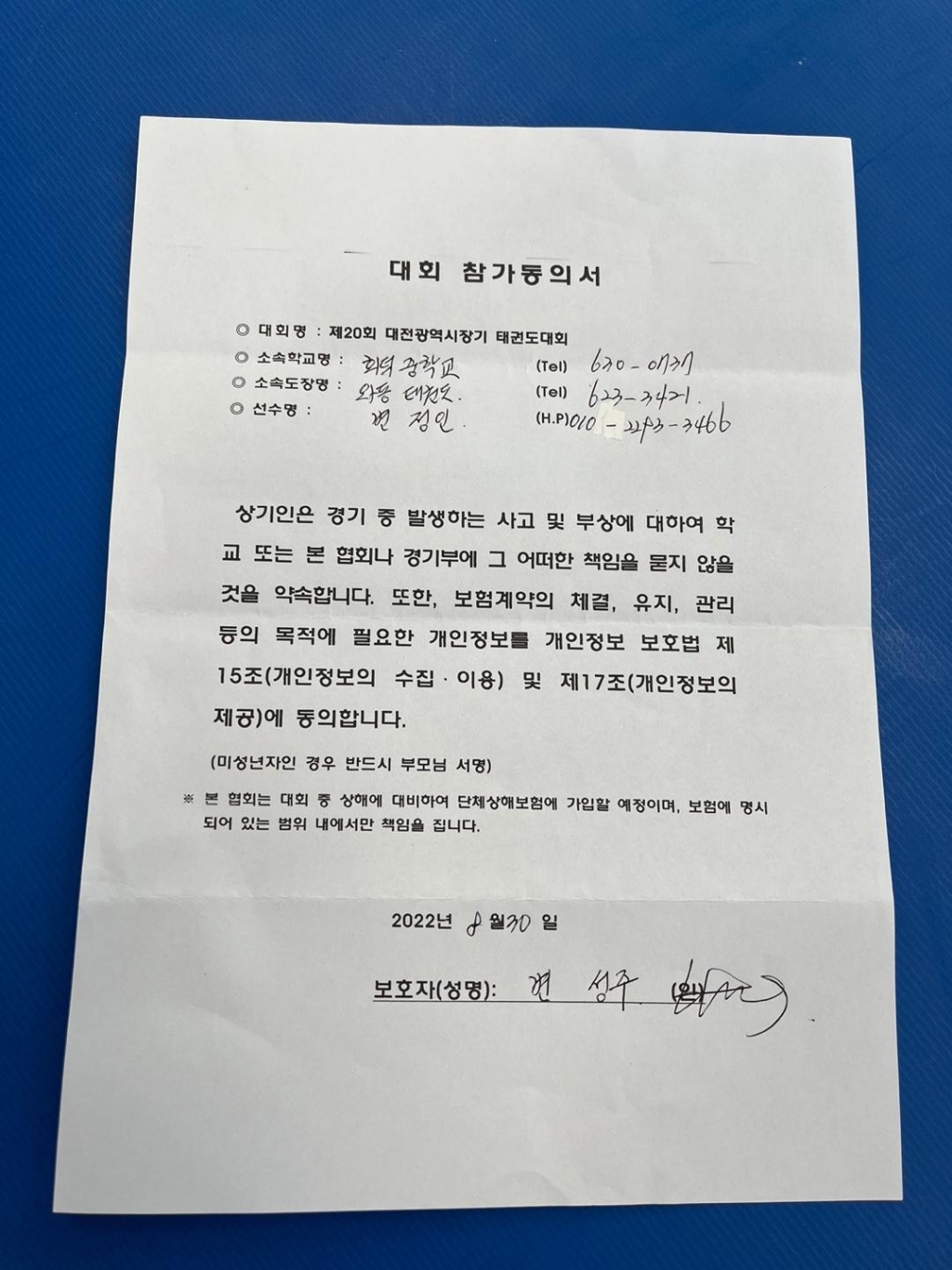 | 494 | 용인대다사랑태권도 대전시장기대회 참가동의서입니다. l image | 용인대 다사랑태권도 | 14 | 2022년 9월 7일 |
