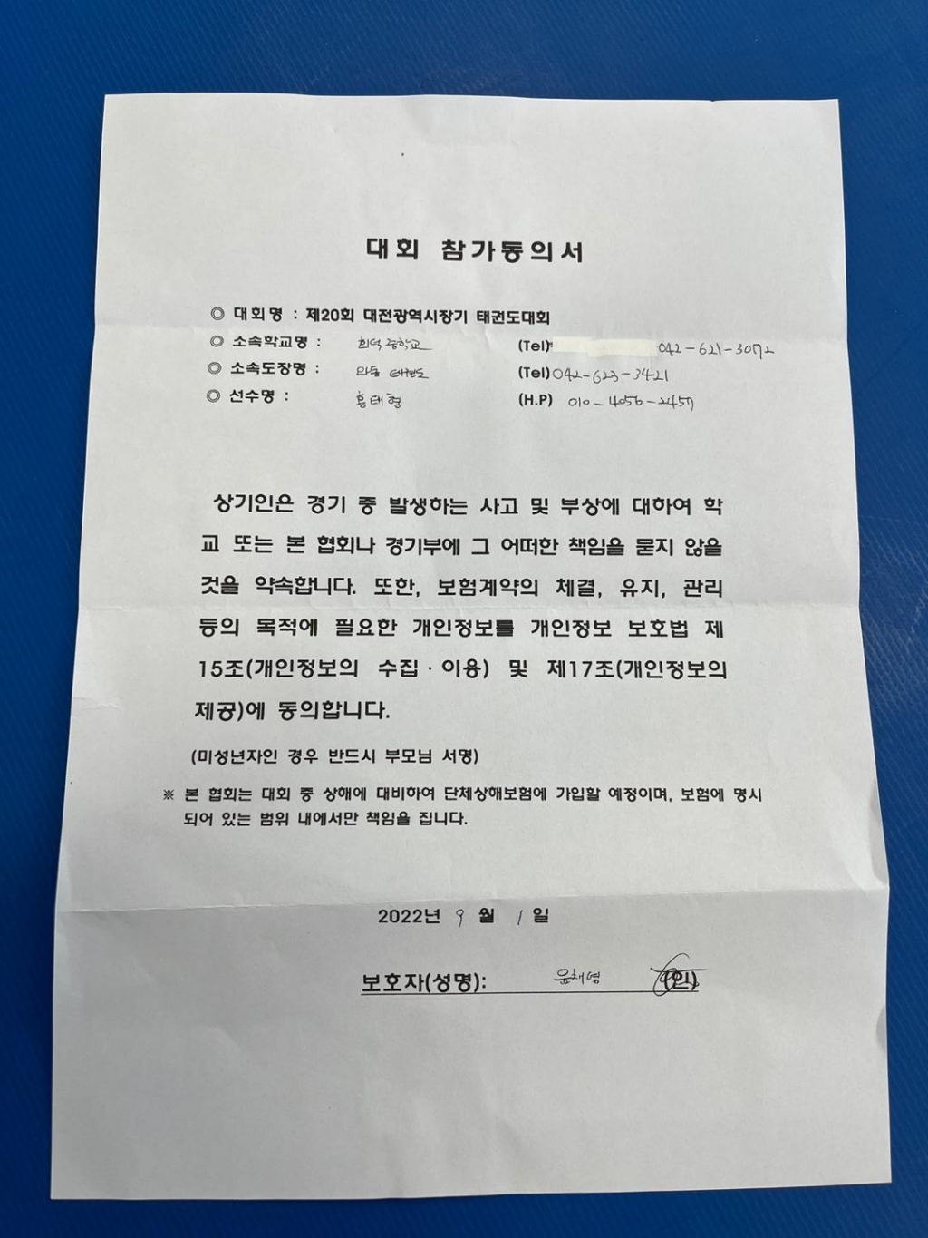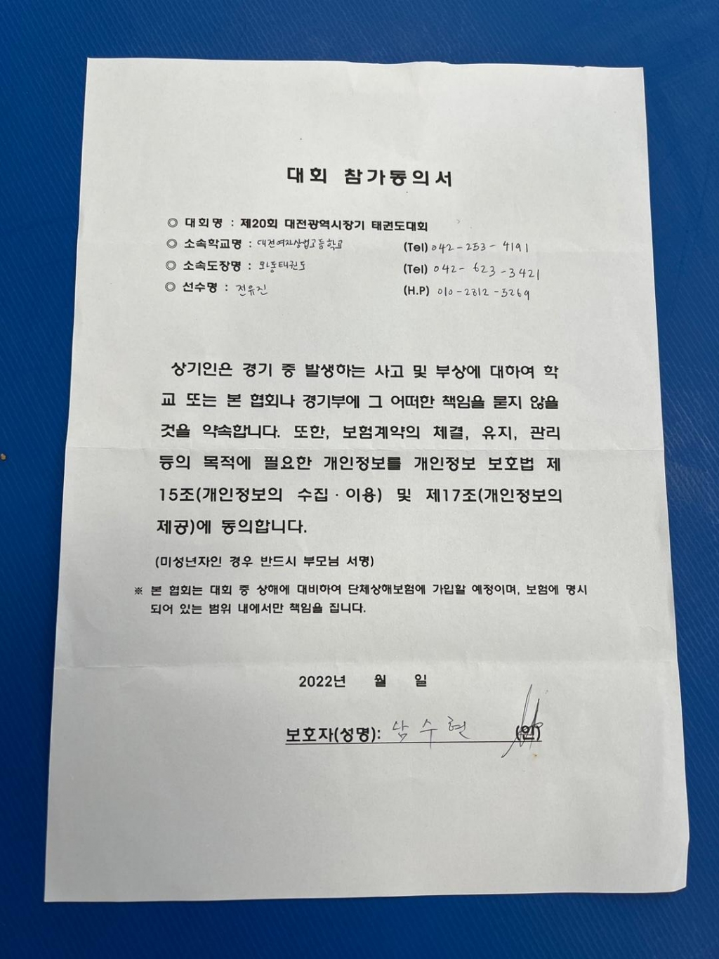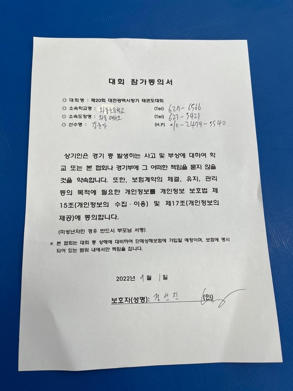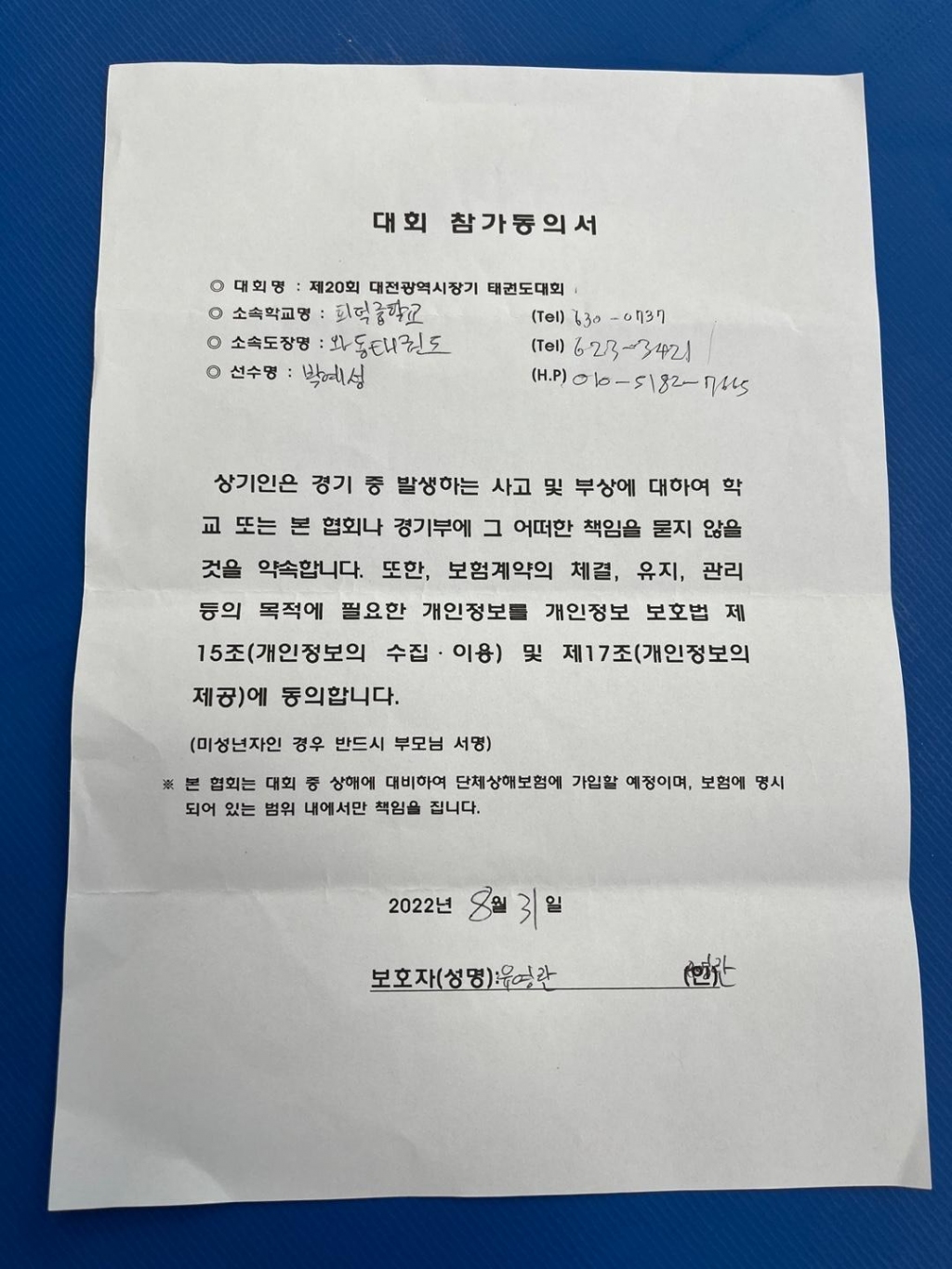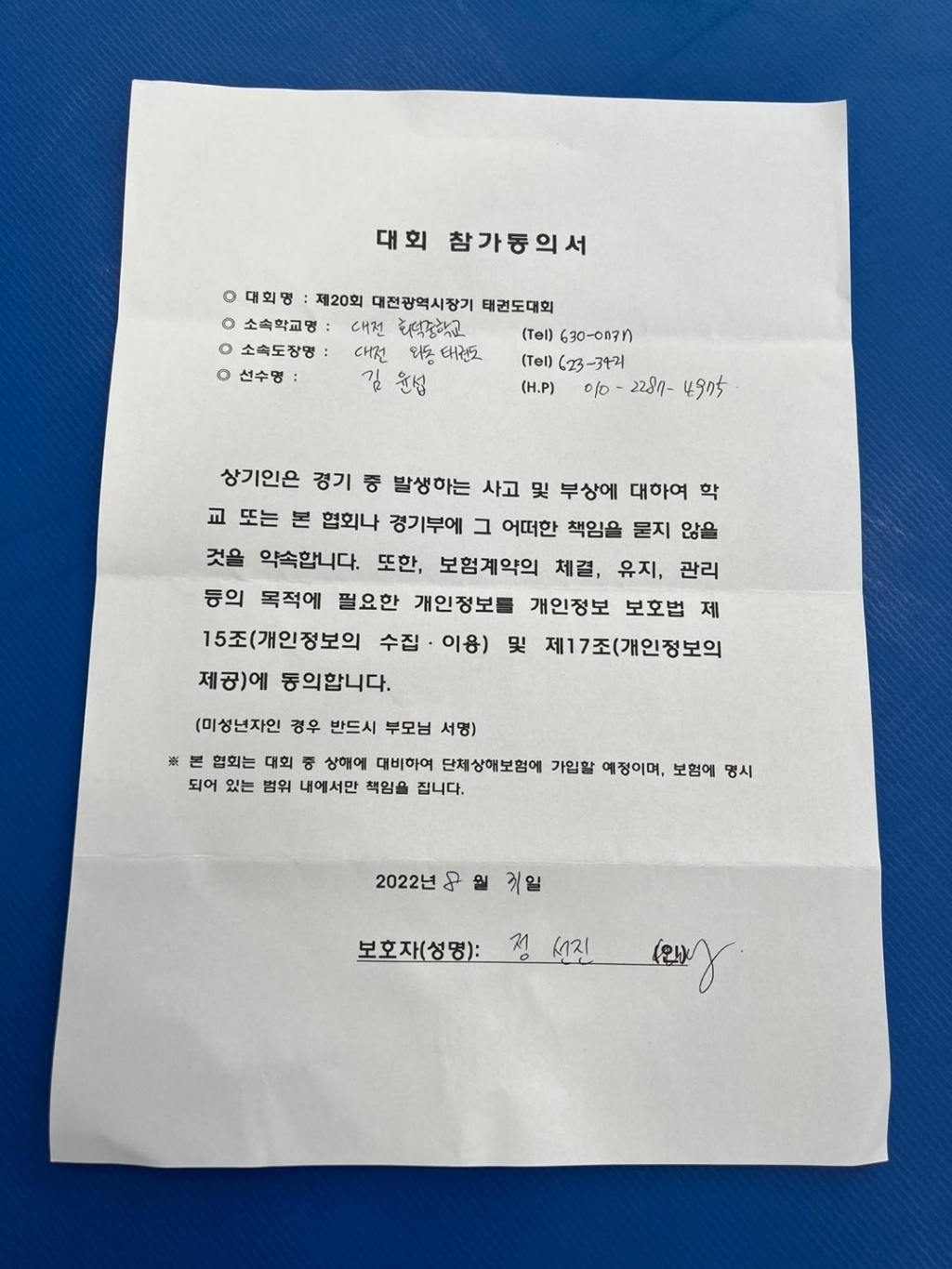 | 494 | 용인대다사랑태권도 대전시장기대회 참가동의서입니다. l image | 용인대 다사랑태권도 | 14 | 2022년 9월 7일 |