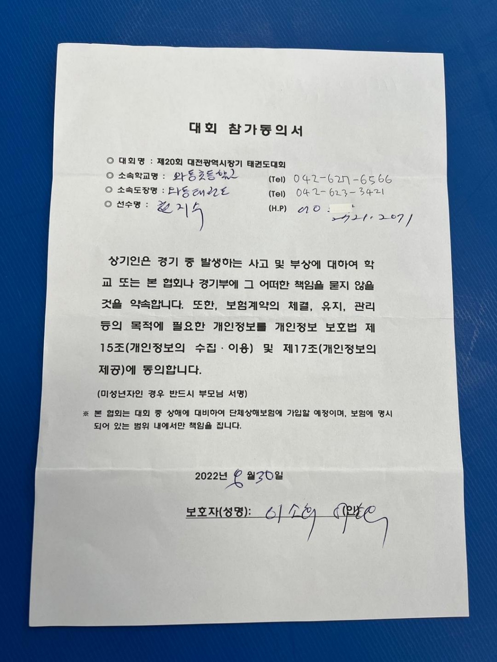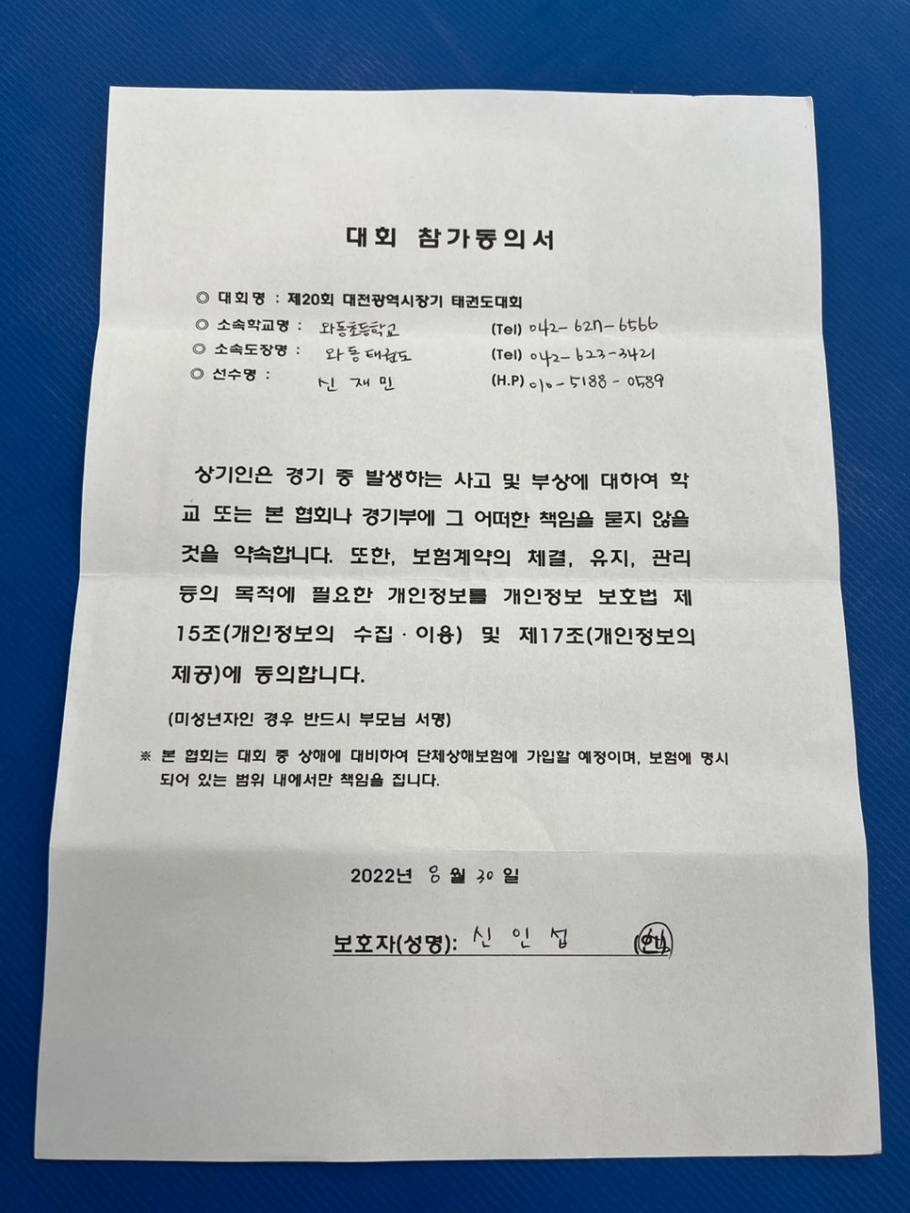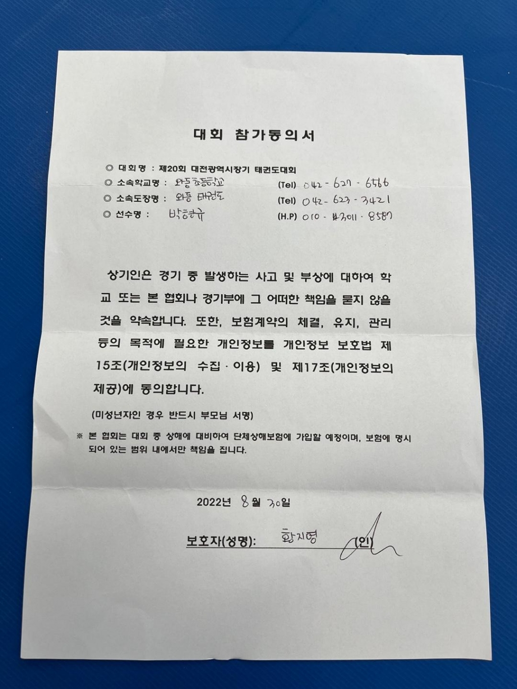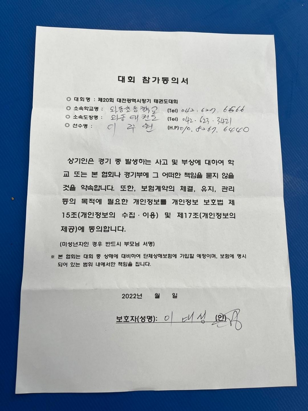 | 494 | 용인대다사랑태권도 대전시장기대회 참가동의서입니다. l image | 용인대 다사랑태권도 | 14 | 2022년 9월 7일 |