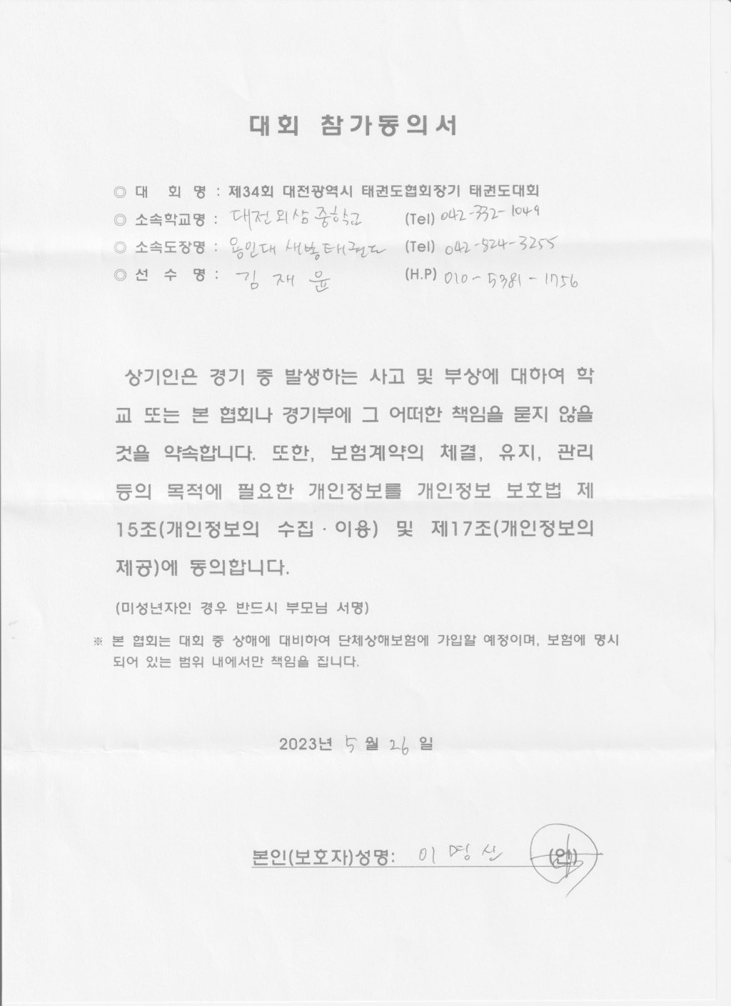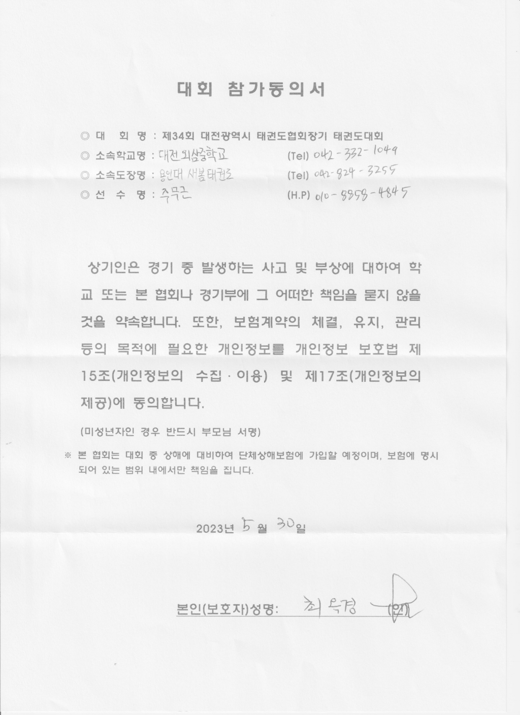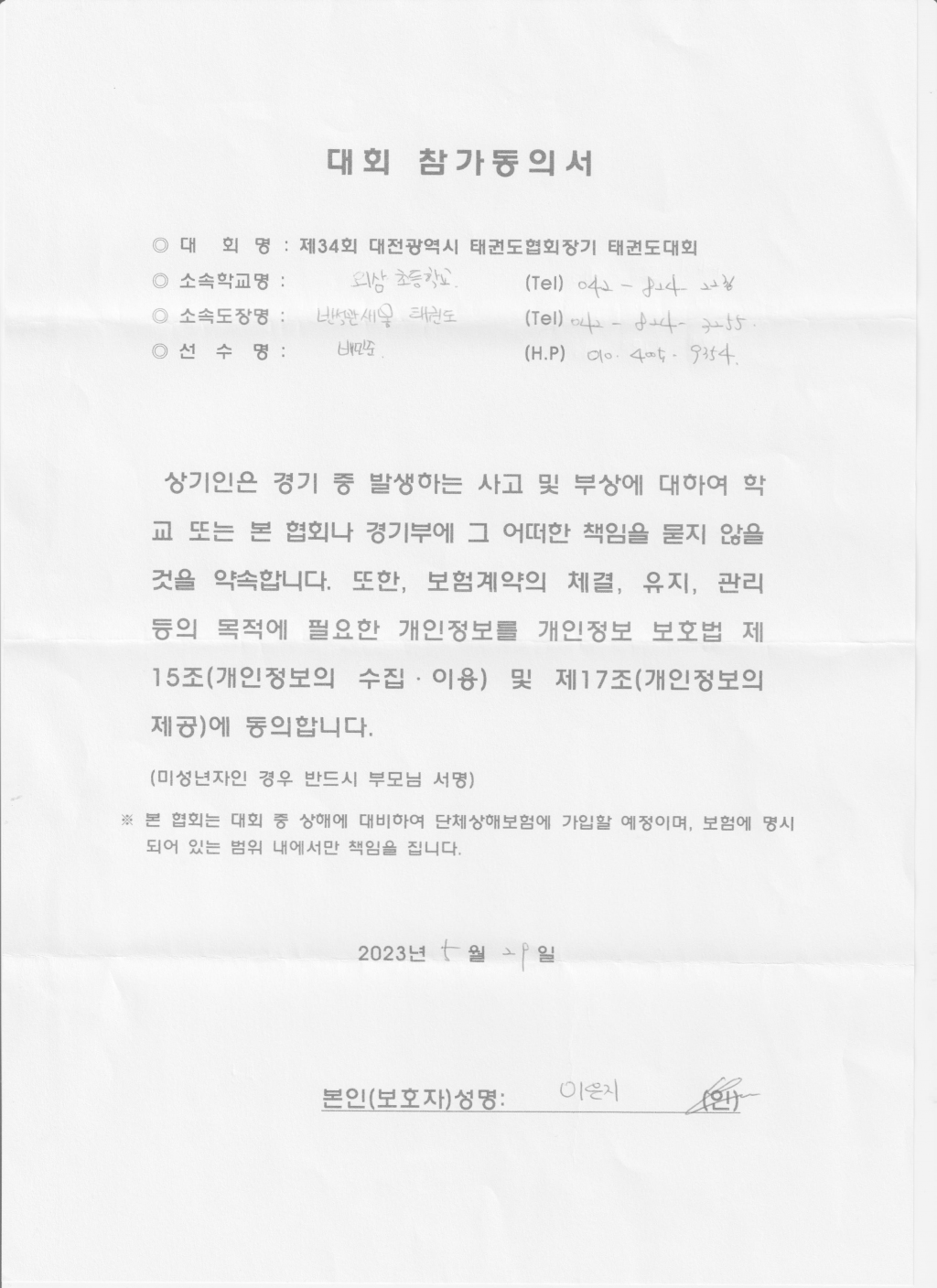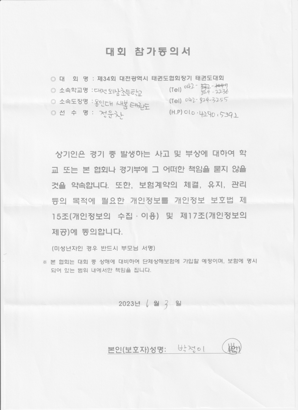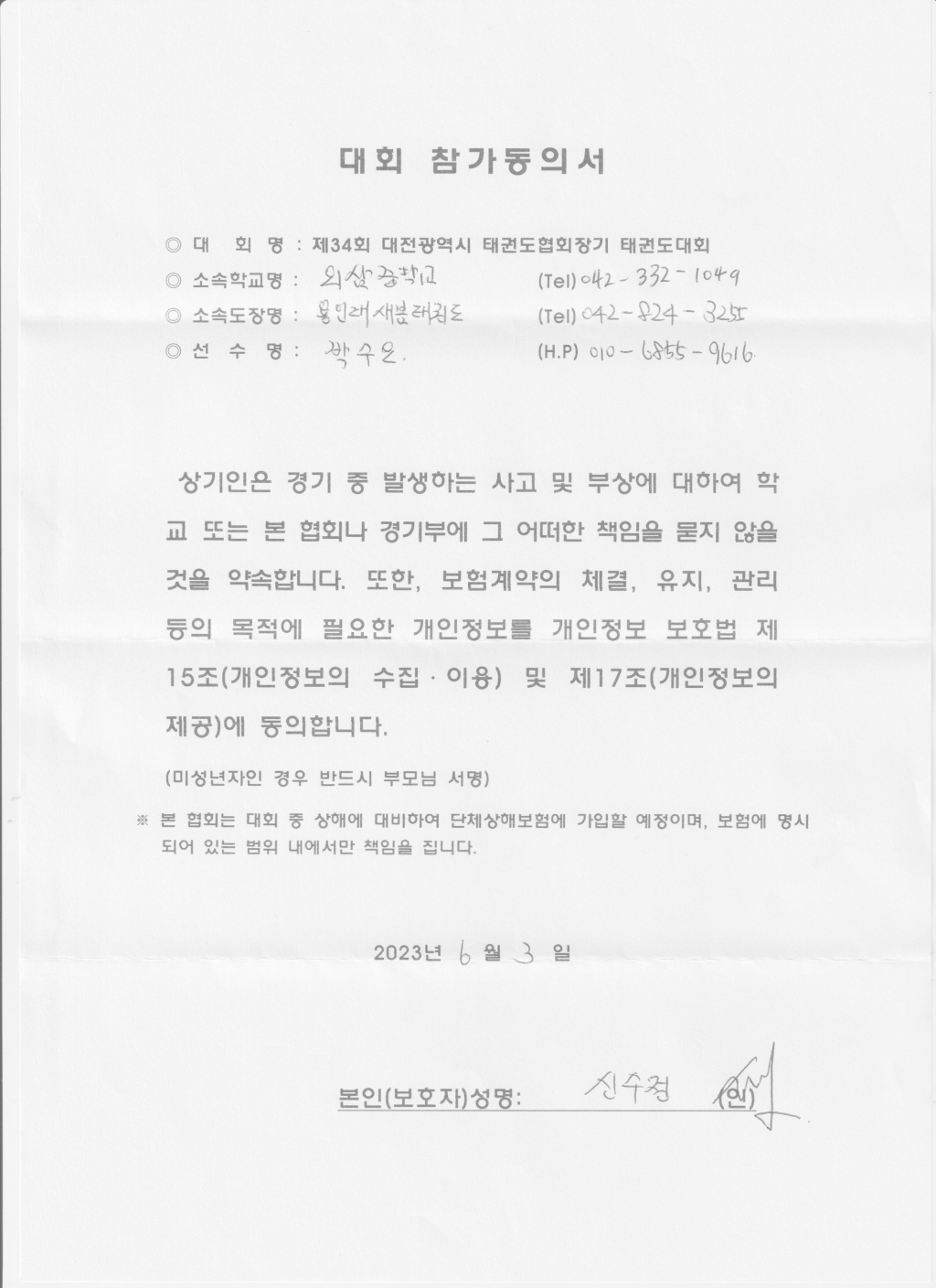 | 610 | 도성태권도 학부모동의서입니다 l c | 국가대표한국체대지기지우도성태권도 | 4 | 2023년 6월 7일 |