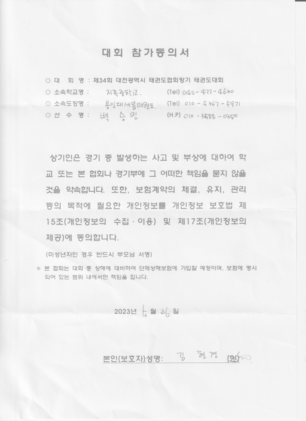 | 598 | 호암태권도장 학부모 동의서 l c | 호암태권도장 | 4 | 2023년 6월 7일 |