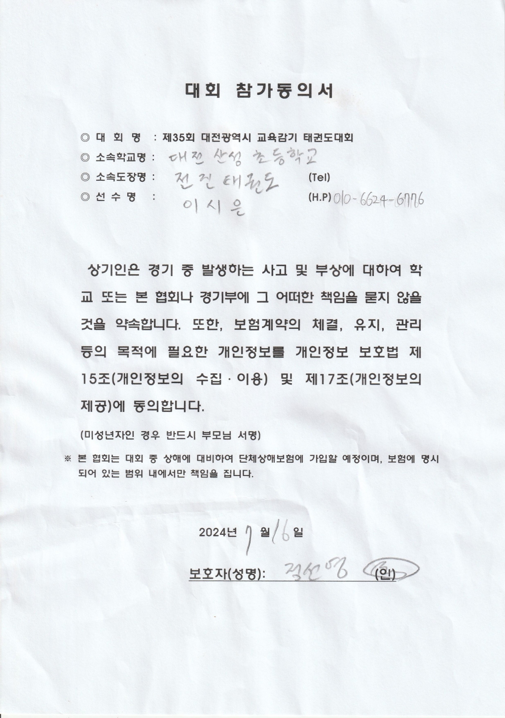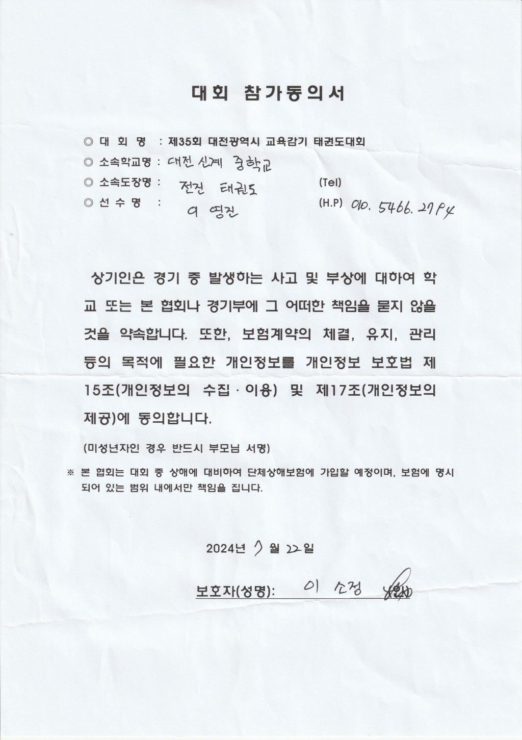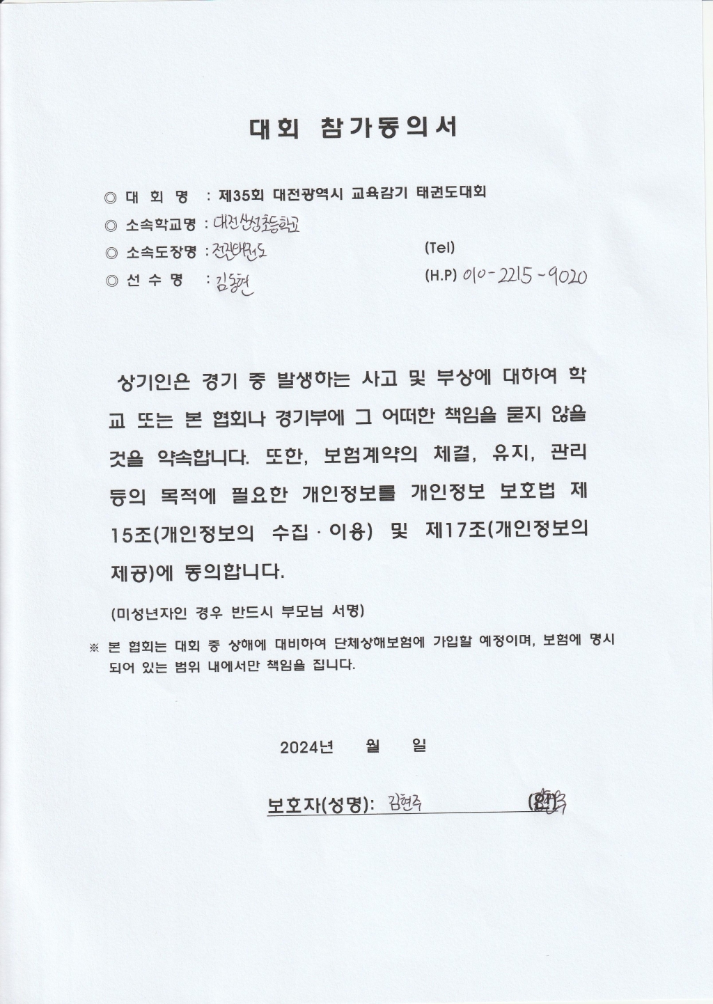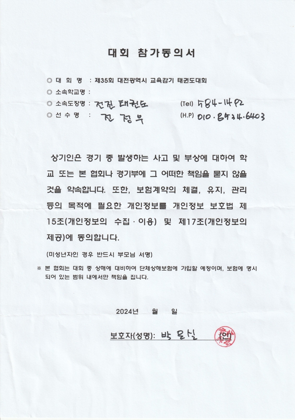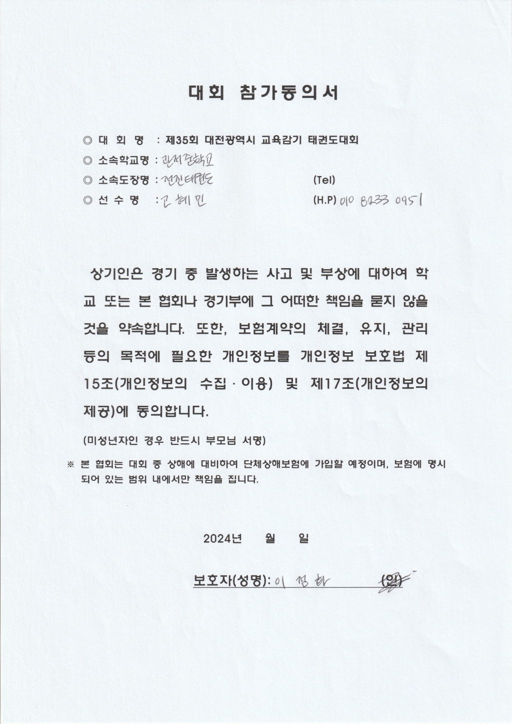 | 1077 | 한국체대 석사태권도장 학부모동의서 입니다. l image | 신광석 | 3 | 2024년 8월 6일 |