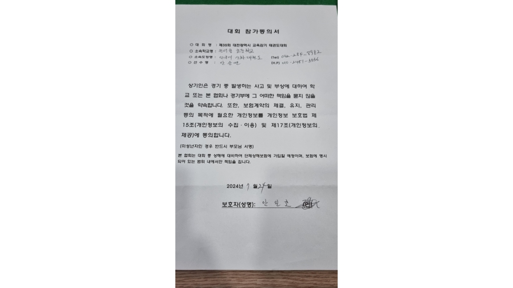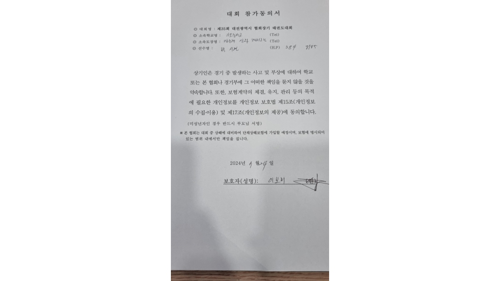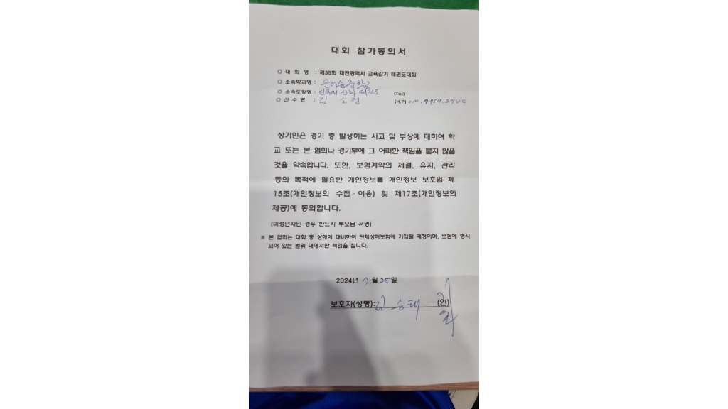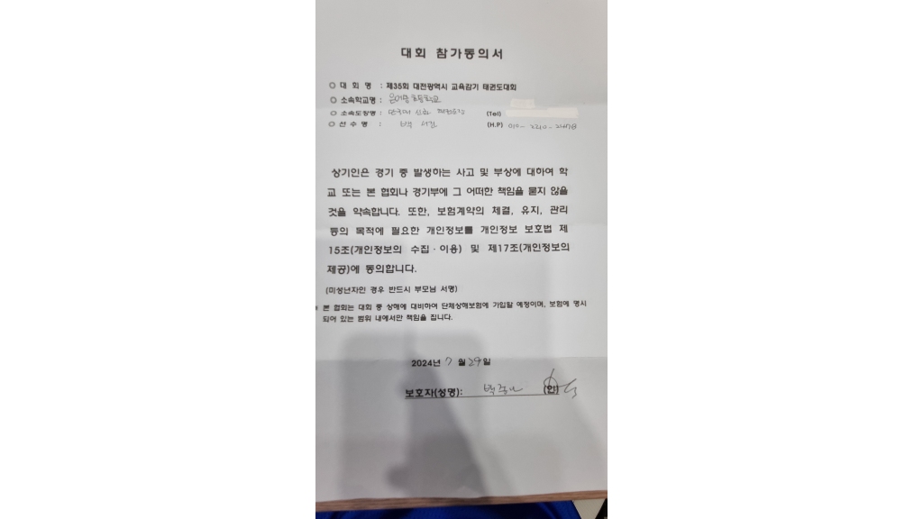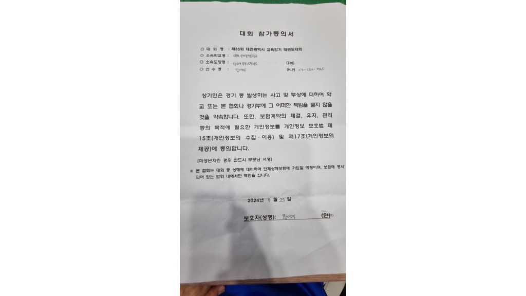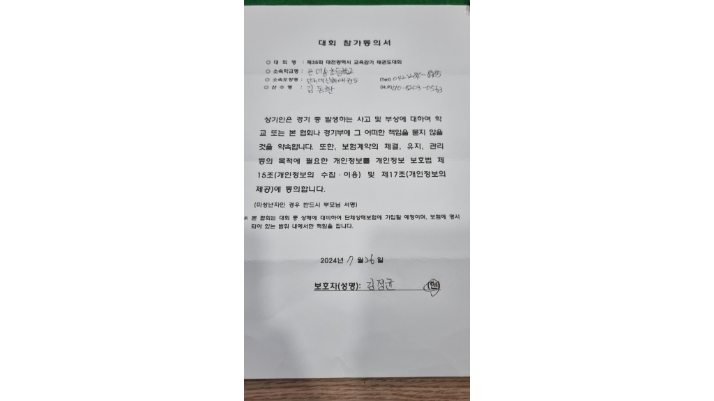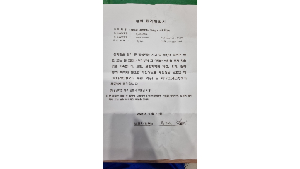 한국체대 석사태권도장 학부모동의서 입니다. l image