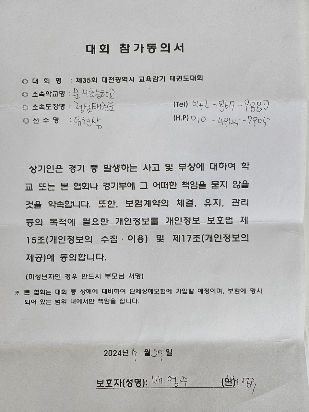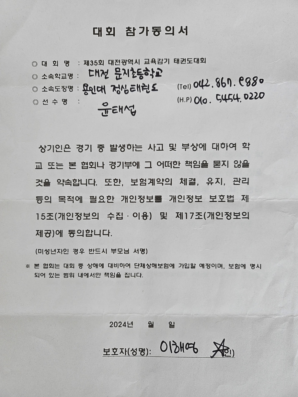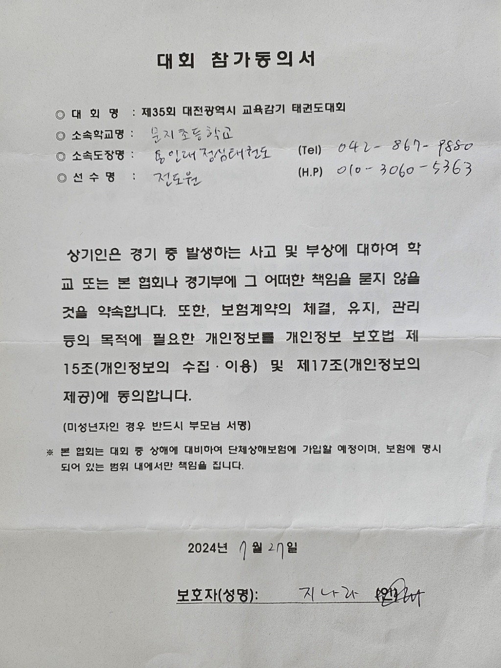 | 1094 | 자운초등학교 참가동의서 l image | 상대호신태권도장 | 8 | 2024년 8월 6일 |