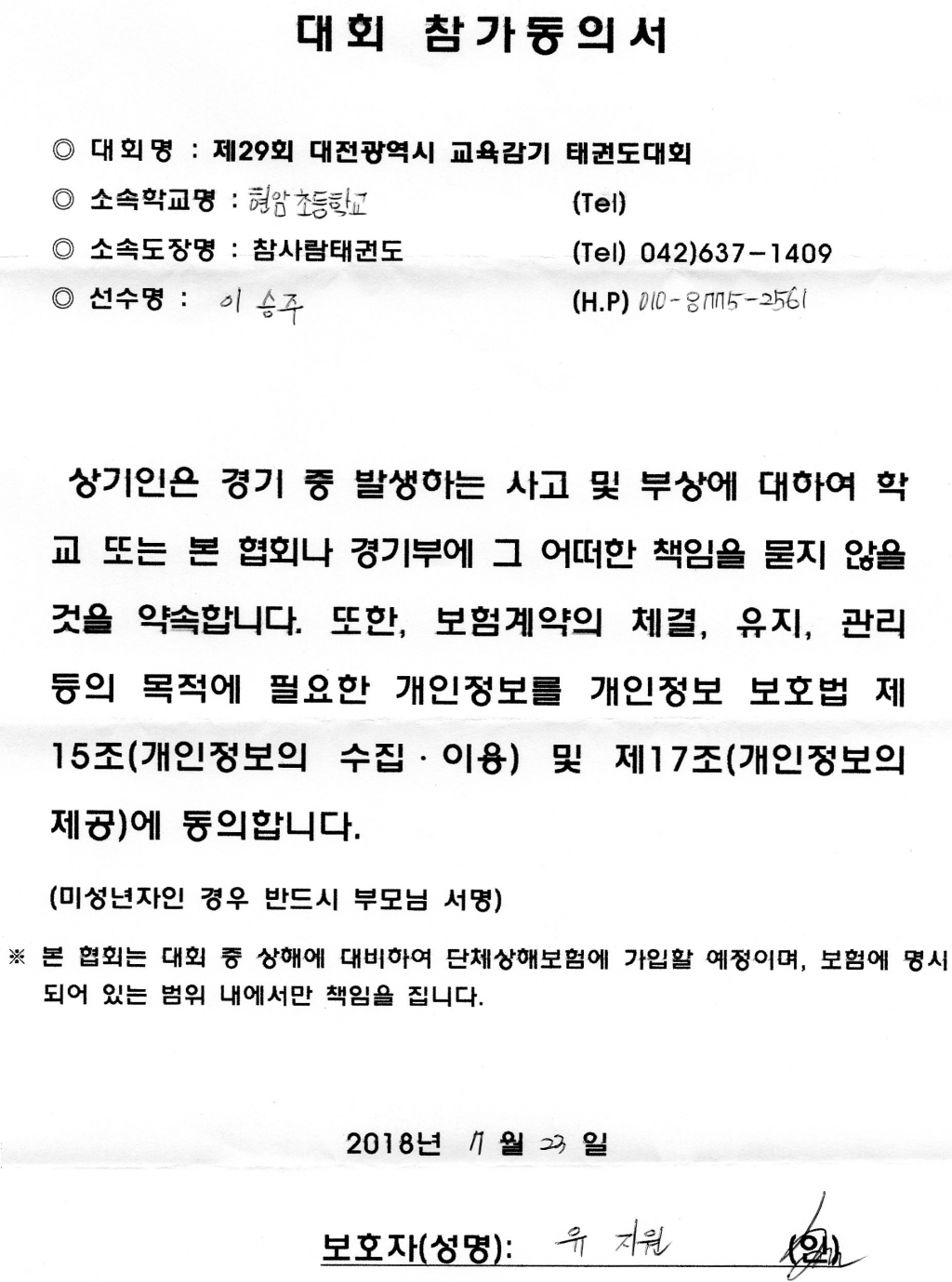 | 35 | 참가동의서 l c | 변동태권도장 | 5 | 2018년 7월 23일 |