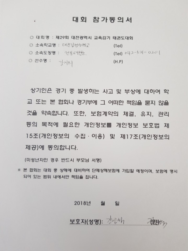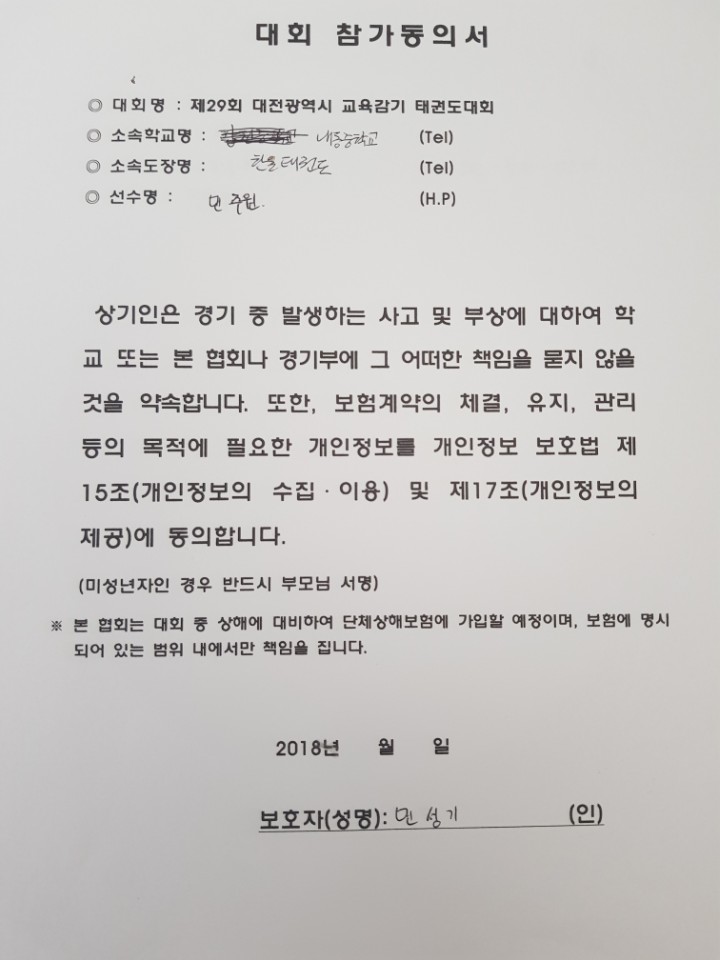 둔산태권도장 학부모 참가동의서 입니다! l image