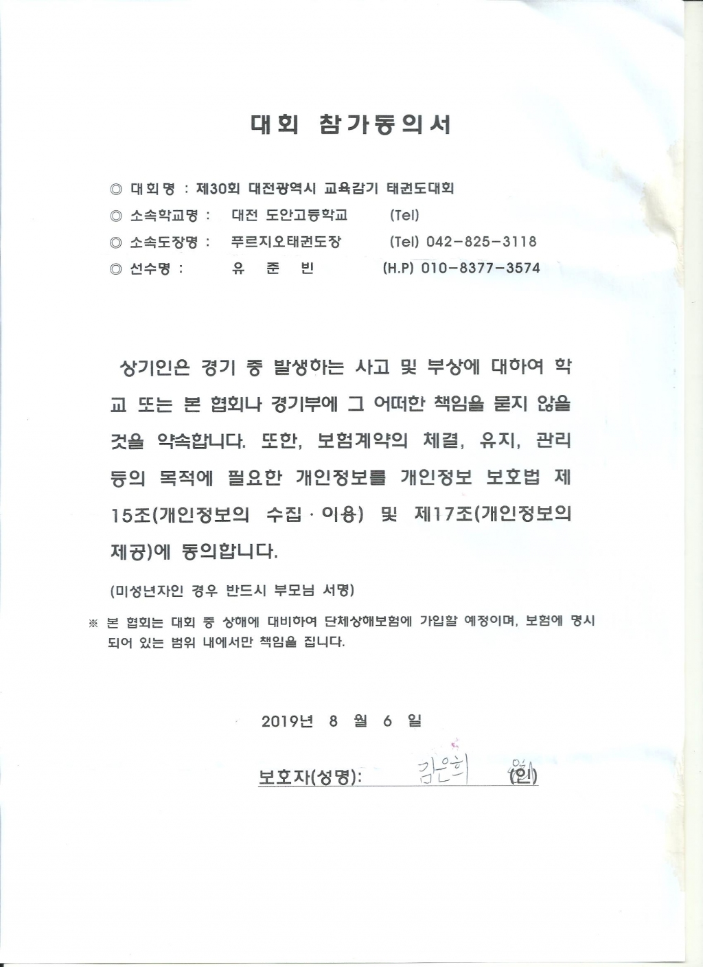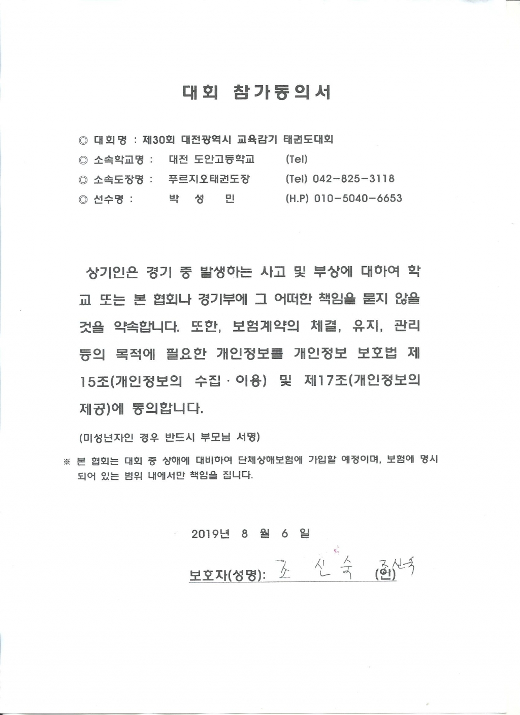 | 286 | 전진태권도 참가 동의서입니다. l c | 임재관 | 4 | 2019년 8월 8일 |