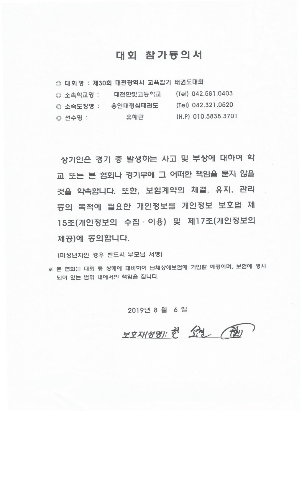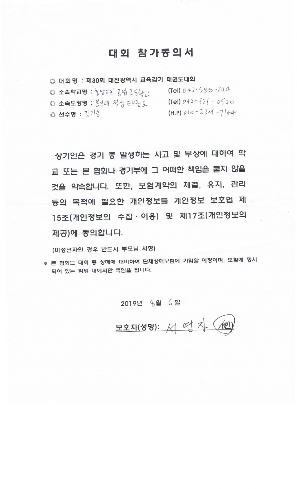 | 286 | 전진태권도 참가 동의서입니다. l c | 임재관 | 4 | 2019년 8월 8일 |