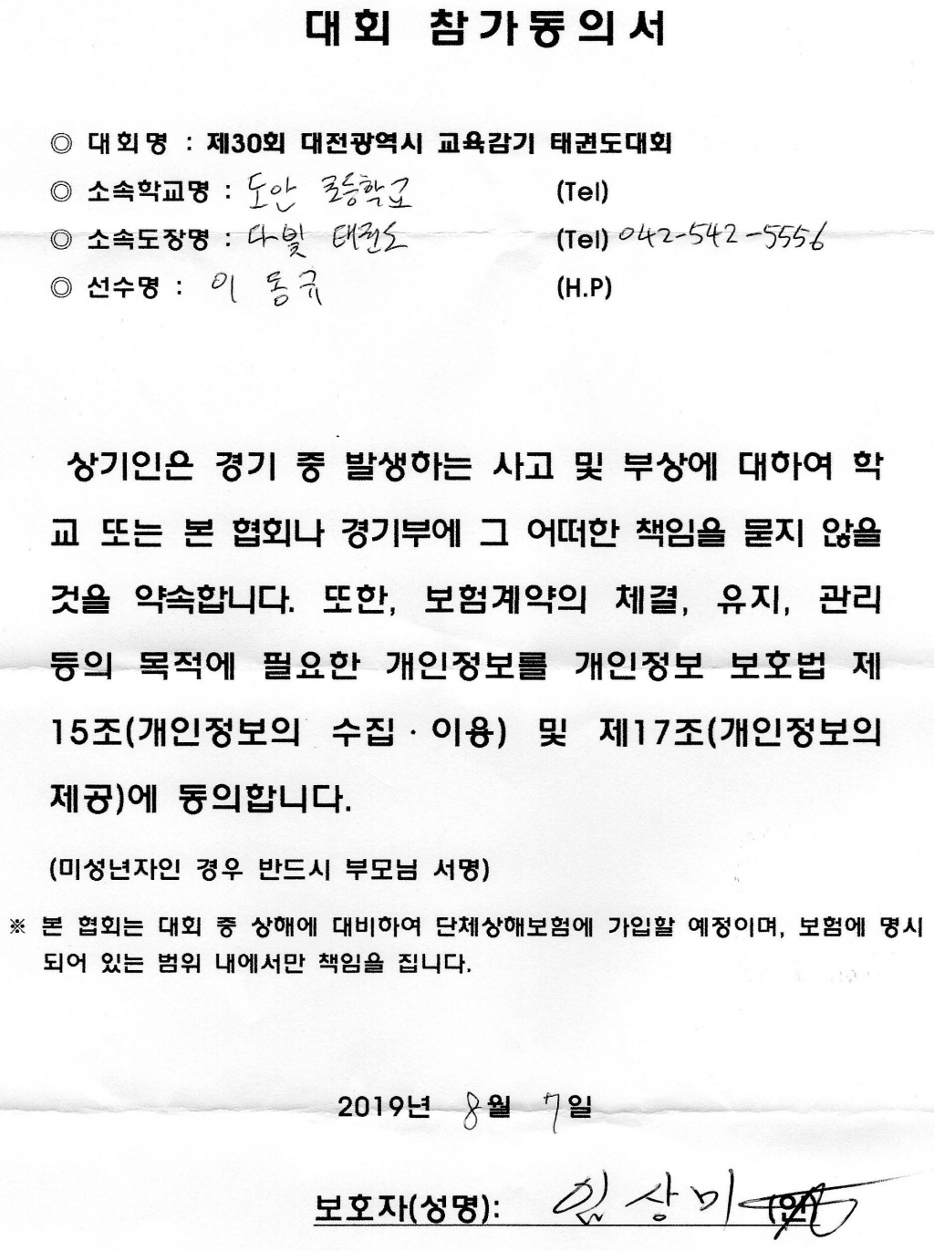 | 300 | 용인대 다사랑 태권도장 학부모 동의서 입니다 l image | 용인대다사랑태권도 | 15 | 2019년 8월 9일 |